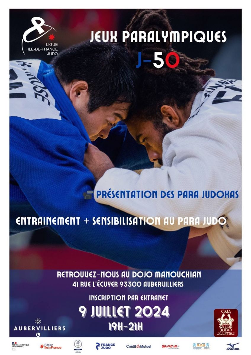 Retrouvez-nous au dojo Manouchian à Aubervilliers le 9 juillet avec au programme une présentation vidéo des para judokas, mais aussi un entraînement et une sensibilisation au para judo.