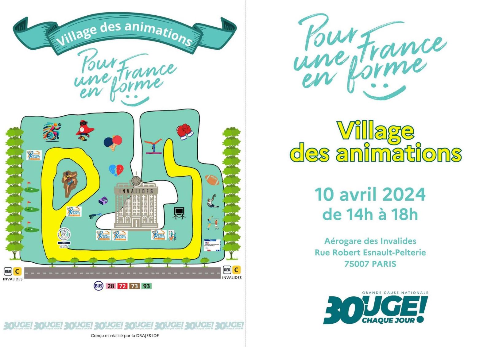 Vous cherchez une activité dynamique et instructive pour demain ? Ne cherchez plus ! Rejoignez-nous au village des animations lors de l'événement "France en Forme" organisé par la DRAJES IDF, le CROSIF et l’ARS aux Invalides dans le cadre de la grande cause nationale « Bouge 30’ par jour ».
