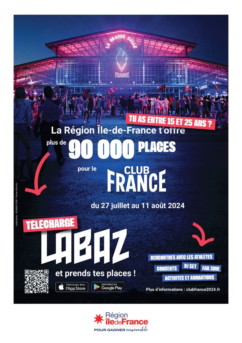 Avec l’application LABAZ, les15-25 ans peuvent obtenir jusqu’à 4 places pour accéder au Club France situé dans la Grande Halle de la Villette.