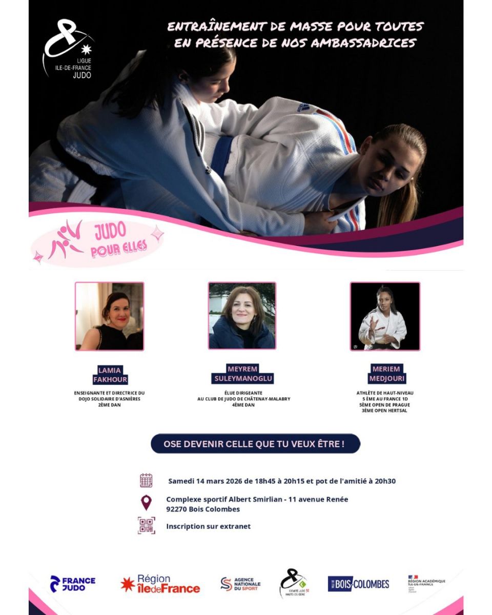Le samedi 14 mars, la ligue IDF de Judo et le comité du 92 organise un entraînement de masse 100% féminin.