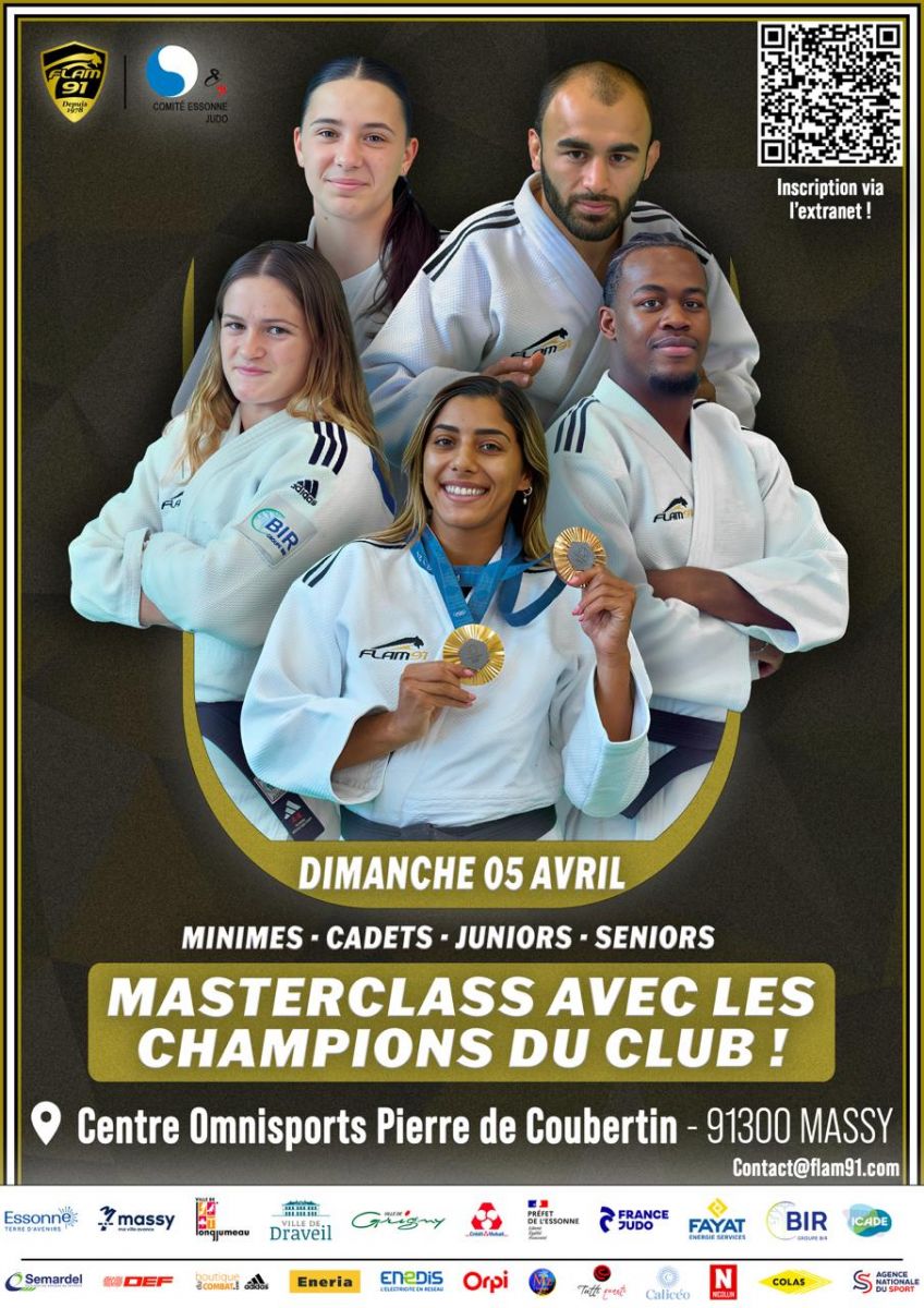 Et masterclass avec les champions du club, minimes, cadets, juniors, seniors, dimanche 5 avril à Massy.